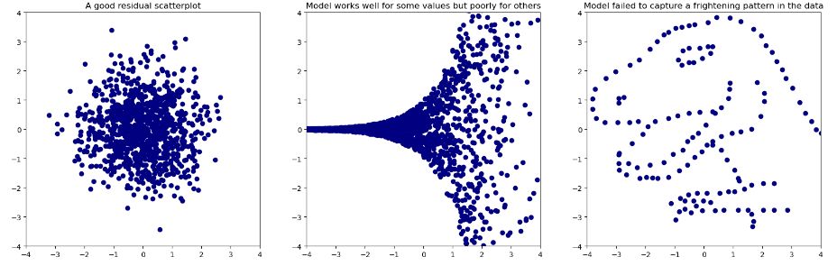 👉 In other words, when you look at your residuals' scatterplot, you should just see a random scaterring of points, with no distinguishable pattern. ♾️
